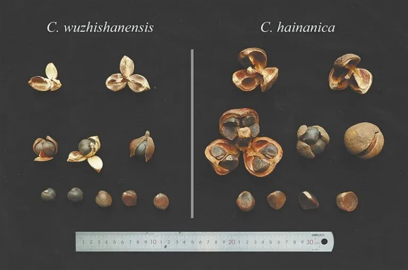 五指山油茶(左)与海南油茶种子形态对比。