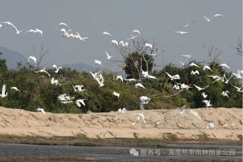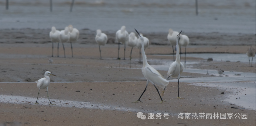 11月2日,在东方黑脸琵鹭省级自然保护区,黄嘴白鹭和黑脸琵鹭两种珍稀的国家一级保护野生动物被同时监测记录到。黄嘴白鹭一身雪白,嘴、颈、脚较长,体态纤瘦优雅。